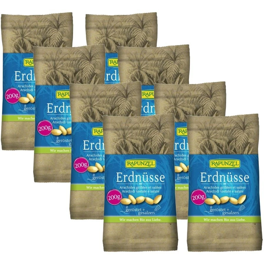 Knackiger Knabberspass! Im Hause Rapunzel knackig geröstet, fein gesalzen und röstfrisch verpackt. Besonders schonend werden die Erdnüsse mit Heissluft aus überwiegend regenerativen Energien geröstet. So entfaltet sich ihr volles Aroma und sie werden herrlich knackig. Die Nüsse werden schonend geröstet. Hierfür werden überwiegend regenerative Energien genutzt. Anschließend werden sie zusammen mit fairem Palmöl und Meersalz vermischt und abgepackt.