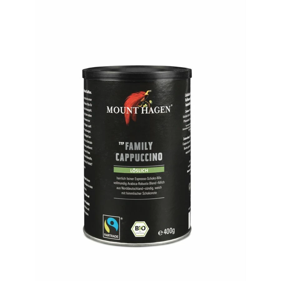 Am besten schmeckt Ihr Mount Hagen Cappuccino, wenn Sie 3-4 leicht gehäufte Kaffeelöffel in einen Becher geben und mit einem Schwall heißen, nicht mehr kochendem Wasser (80°C) übergießen. Umrühren.Fertig