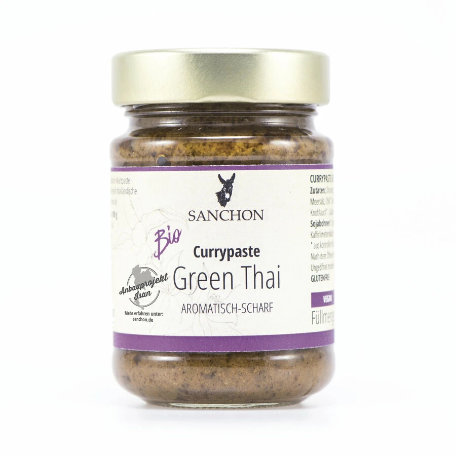 Sanchon Green Thai ist eine hocharomatische Würzpaste mit einer feinen Koriandernote für authentisch thailändischeCurrygerichte.