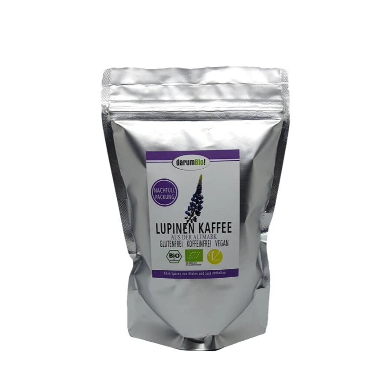 Der darumBio! Lupinen-Kaffee ist vom Anbau bis zur Röstung ein regionales Erzeugnis aus der Altmark. Die eiweißreiche Weiße Süßlupine ist hierfür die Grundlage. Unser Lupinen-Kaffee bietet eine prima Alternative für Kaffeeliebhaber die natürlich und ohne Koffeein in den Tag starten möchten.
