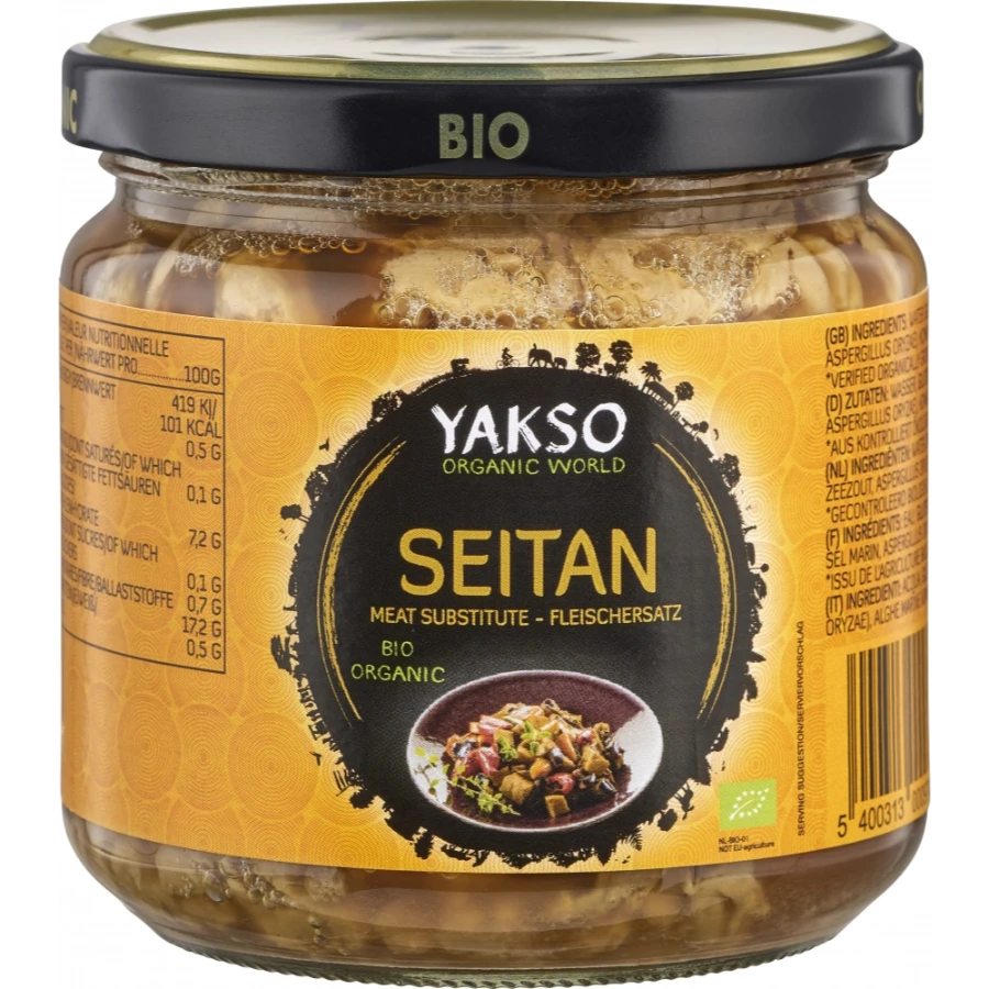 Yakso Seitan. Seitan ist ein Fleischersatz. Egal, ob gewürfelt, ganz oder in Scheiben geschnitten, Seitan ist vielseitig einsetzbar. Die Weizenstücke wurden in Tamari-Sauce eingelegt, um eine gute Würze an das Seitan zu bringen.