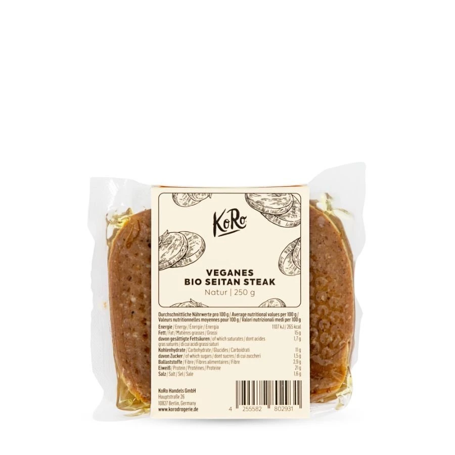 Veganes Bio Seitan Steak Natur. Ähnlich wie ein Steak aus Fleisch kann das vegane Seitan-Steak sowohl in der Pfanne, als auch auf dem Grill gebraten werden. In Scheiben geschnitten oder zerkleinert verfeinert es auch wunderbar Ragouts, Salate oder Eintöpfe. Mit einer würzigen Marinade verleihen Sie dem Seitan-Steak eine ganze eigene Note.