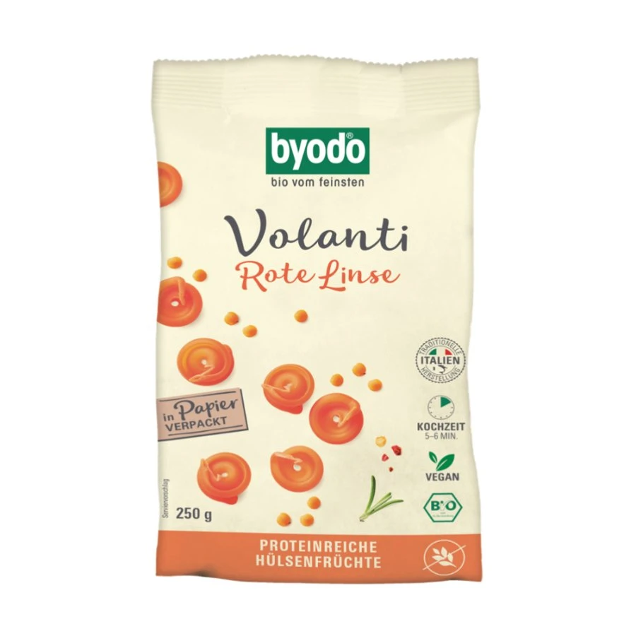 Die rote Linsen Volanti der glutenfreien Linie Pasta Speziale ist auf dem Teller eine wahre Farbenpracht! Die Bio-Pasta schmeckt hervorragend zu cremigen Käse-Saucen, aber auch zu klassischem Pesto und leichten Tomatensaucen. Versuchen Sie sich und lernen sie die fliegenden Untertassen aus feinen Bio-Linsen auf köstliche Art und Weise kennen.