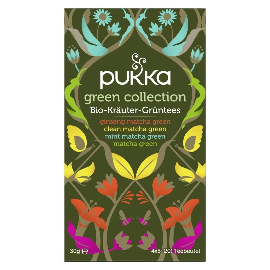 Willkommen bei dieser Kollektion ausgewählter Pukka Bio-Tees. Lass sie deine Geschmacksknospen verwöhnen und deine Seele stimulieren. Tauche ein in Ganzblatt-Grüntees mit smaragdgrünem Matcha, angereichert mit kühlender Minze, erfrischender Zitrone, lebhaftem Roten Ginseng. Deine Schachtel grüner Weisheit!